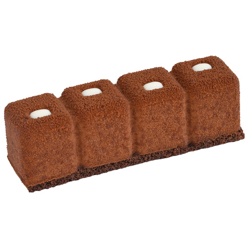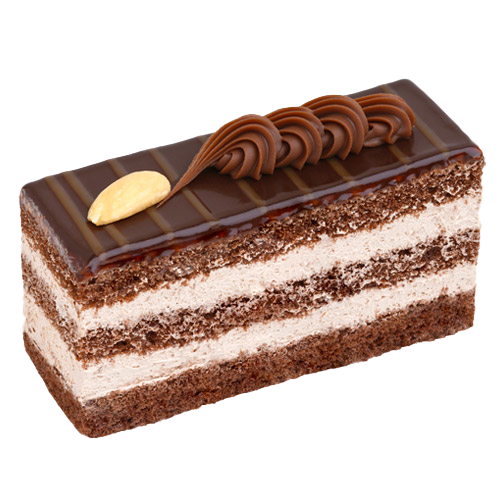 Chocolate sponge cake layers stuffed with fresh chocolate cream, covered with natural dark chocolate, then decorated with roasted nuts