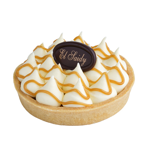 Elegant tart with buttery shell, filled with fresh cream, topped with fresh banana pieces, covered with delicious caramel sauce.