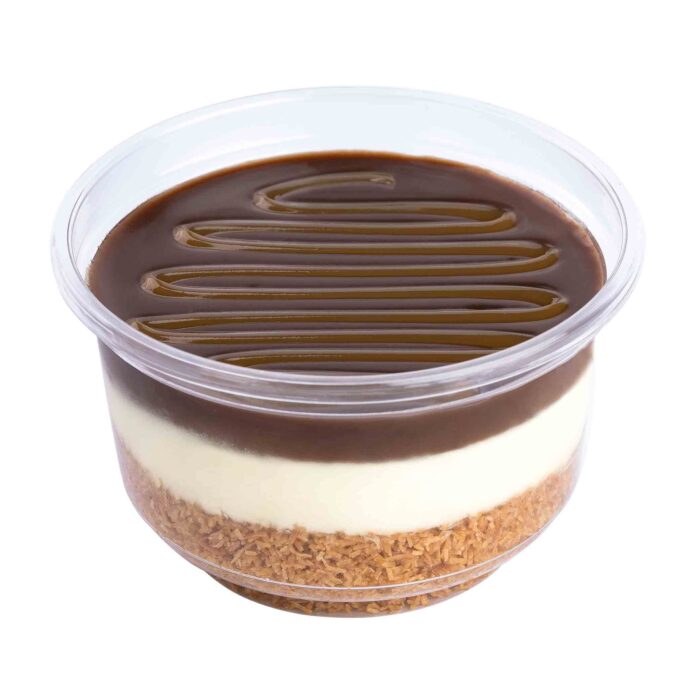 Delicious cup of golden crunchy kunafa layer topped with fresh banana pieces & fresh cream layer, covered with caramel sauce layer.