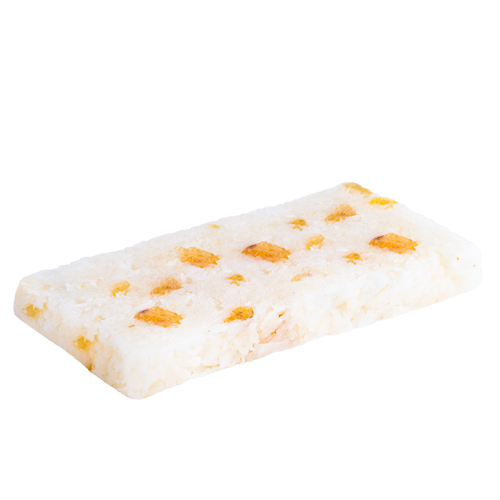 Soft coconut bar from premium coconut, sugar, syrup and vanilla with golden raisins.