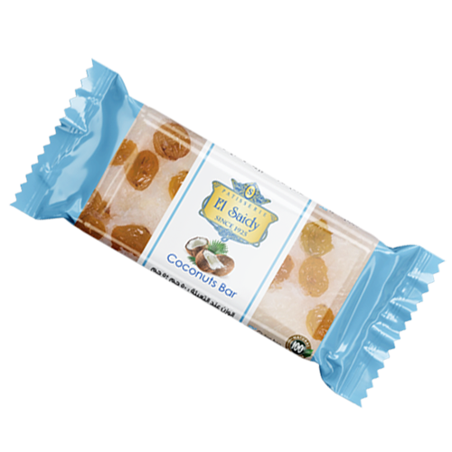 Delicious sweet bar of premium coconut, sugar, syrup, vanilla with golden raisins.
