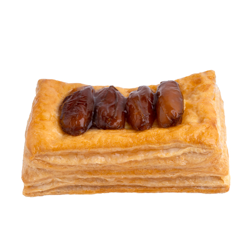 Golden sweet apple pie from buttery puff pastry, filled with apples sauce & fresh apple pieces, topped with powdered sugar.