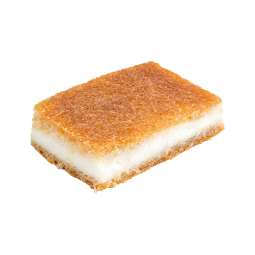 Double layered golden Kunafa with tasty cream filling, sweetened with syrup.