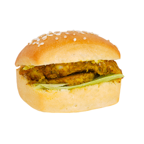 Delicious mini sandwich with grilled chicken topped with roasted sesame seeds.