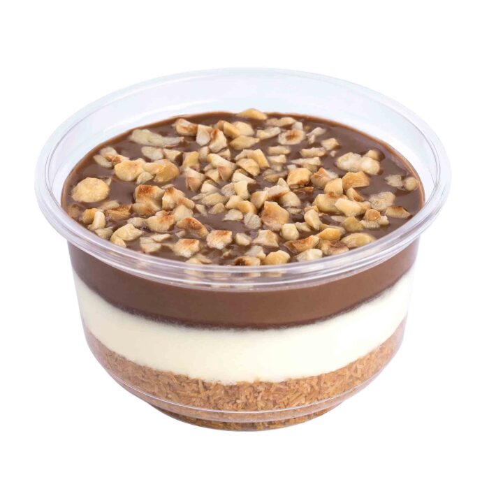 Delicious cup of golden crunchy kunafa layer topped with fresh cream layer, covered with nutella spread layer.