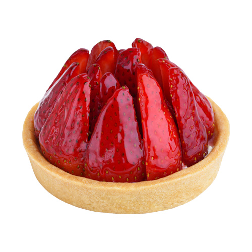 Elegant tart with buttery shell, filled with fresh cream, covered with fresh strawberry pieces.