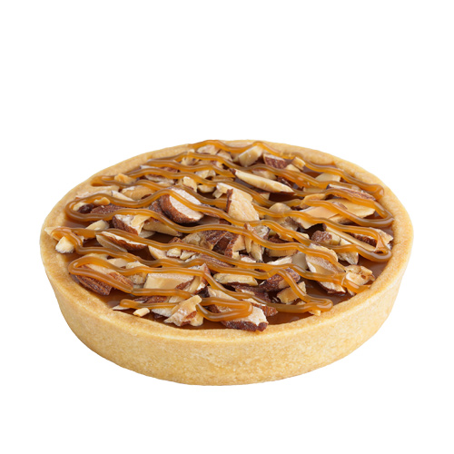 تارت محضر بعناية من عجينة السابليه الفرنسية الهشة والغنية بالزبدة الطبيعية، محشو بفريش كريم، مغطى بصوص كراميل لذيذ ومزّين بالمكسرات الفاخرة؛ لإضفاء طابع من الفخامة.