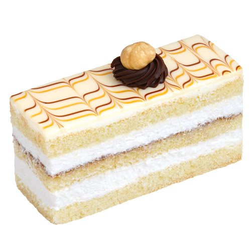 طبقات كيك فانيلا إسفنجية هشة، محشية بفريش كريم وصوص شوكولاتة ميلك طبيعي، مغطاه بطبقة من صوص الشوكولاتة البيضاء الفاخرة، ويزين بشوكولاتة ميلك والمكسرات المحمصة لإضافة لمسة من القرمشة.